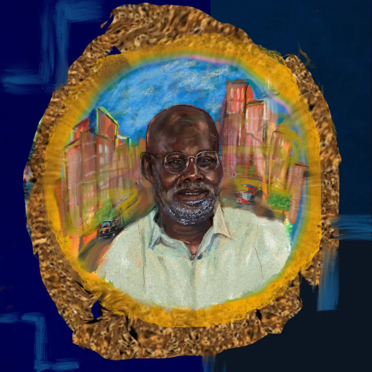 Through experimental techniques combining textured printed layers, I developed unique portraits that capture each poet's essence. Originally launched at Manchester Metropolitan's Poetry Library, the exhibition now exists digitally, combining my layered illustrations with photography portraits and podcast conversations. This multimedia approach creates a rich digital archive that preserves both the visual presence and voices of these influential literary figures.